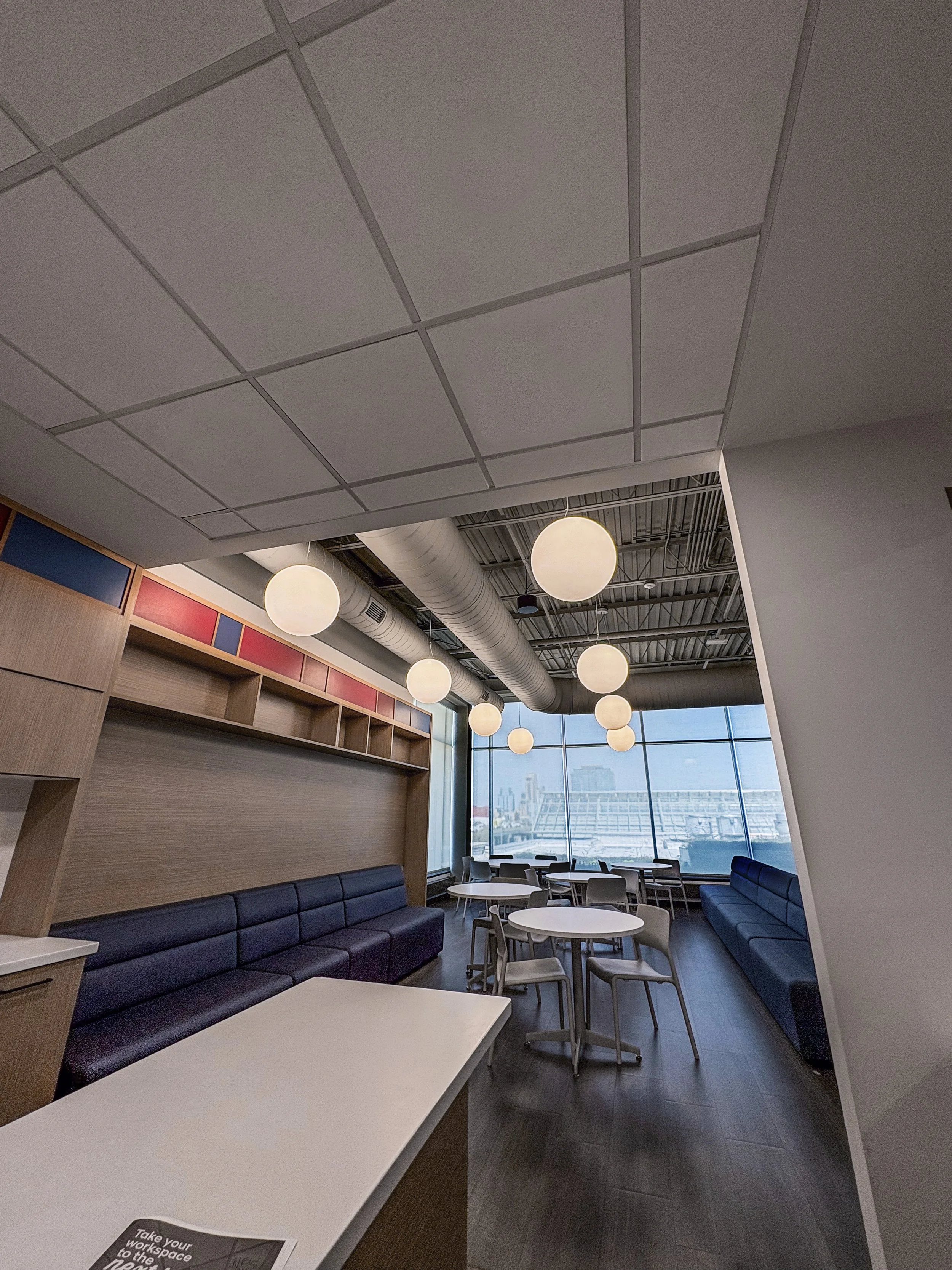 Many desirable features line the space, adding to comfort, convenience, and day-to-day employee needs.