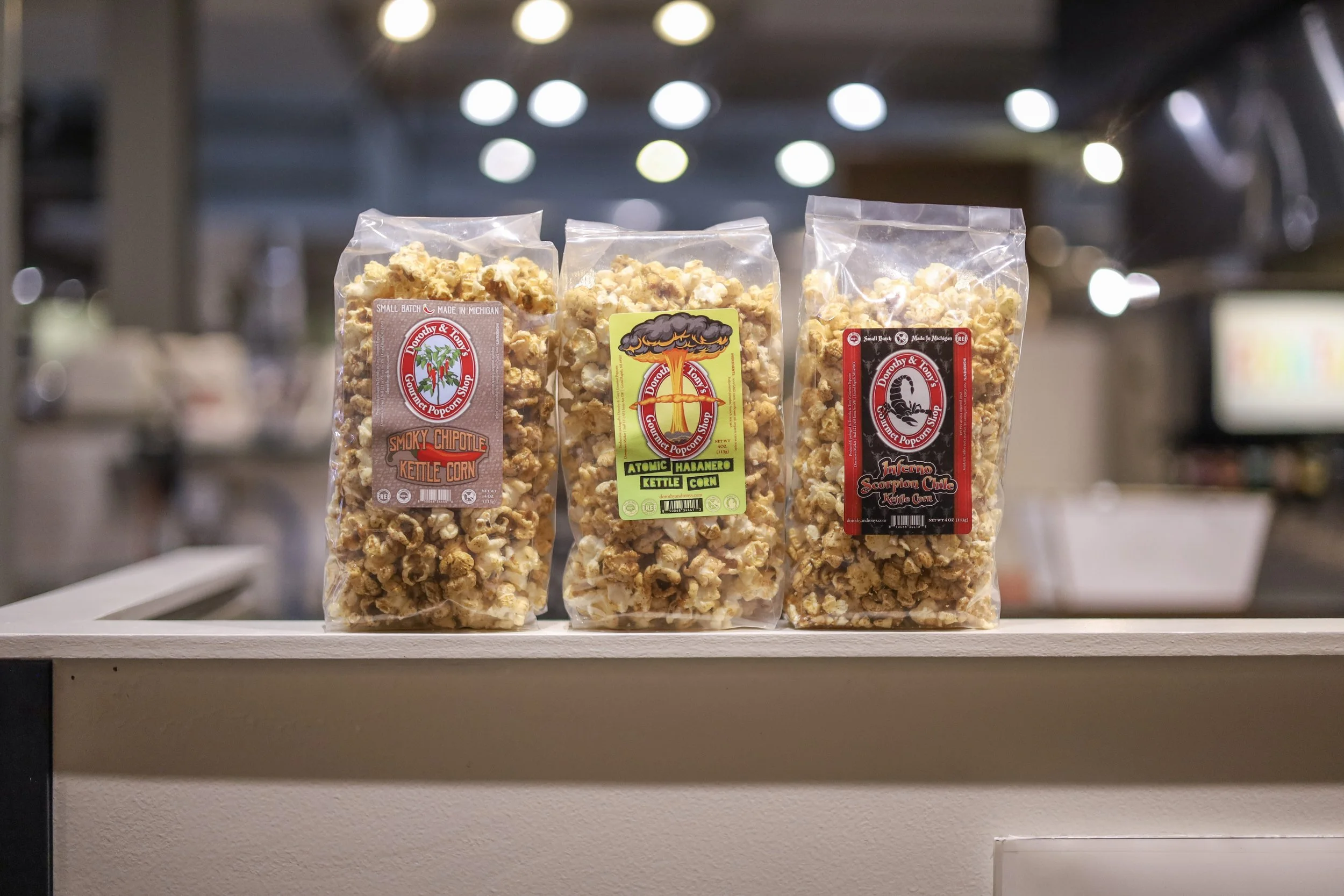 Spicy Flight: 4oz bags of Dorothy & Tony’s signature spicy varieties: Atomic Habanero Kettle, Smoky Chipotle Kettle, and Inferno Scorpion Chile Kettle. $11.99