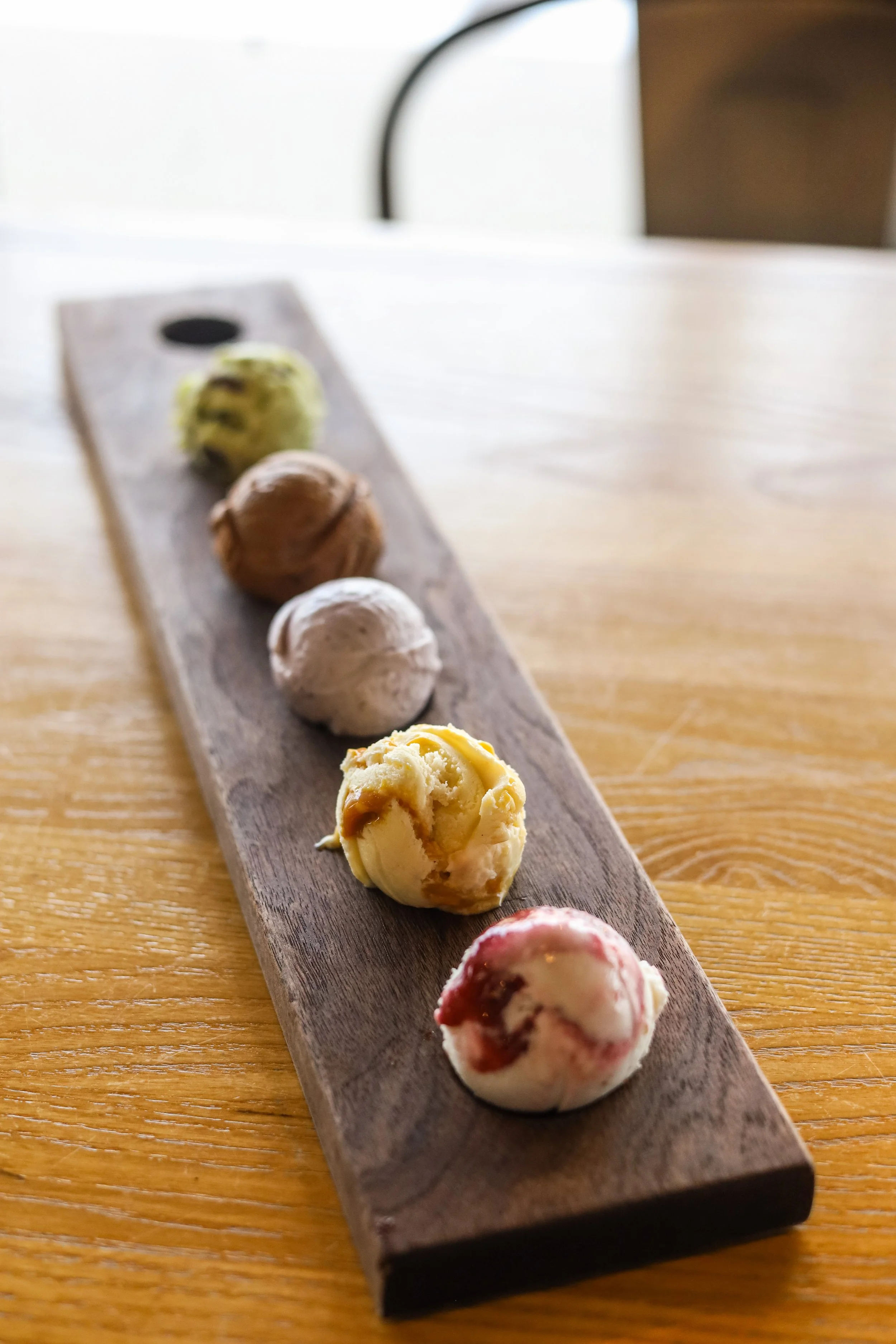 Duo Flight: Choose three scoops/two bon bons for $11.