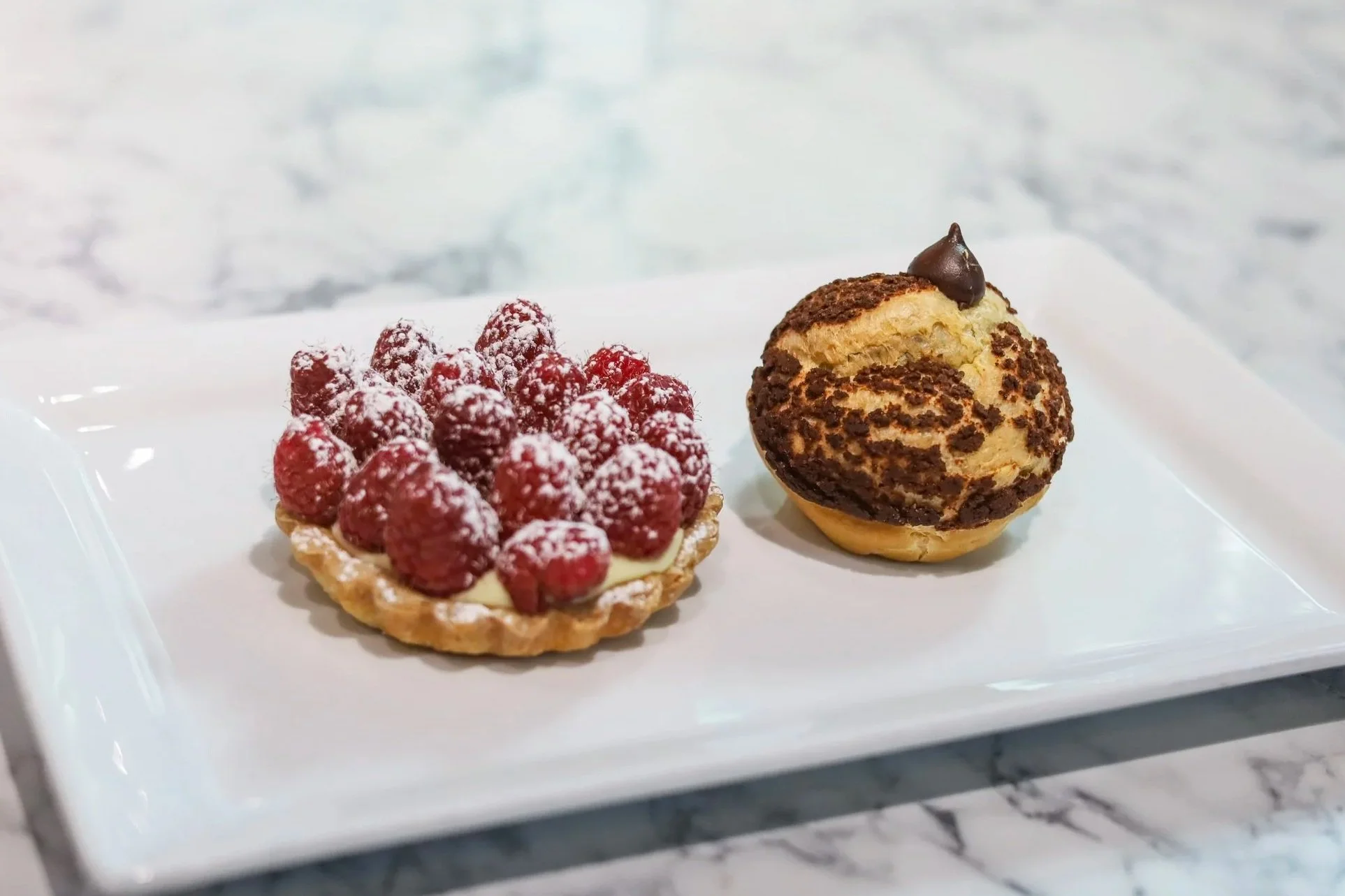 Order this date night duo of a raspberry tartelette paired with a chocolate cream puff from Gaby’s and fill your special outing with classic French pastries.